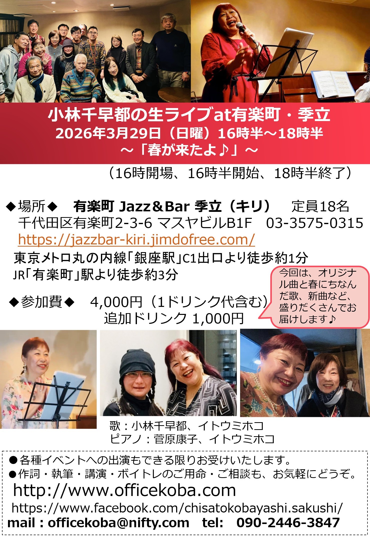 【次回Live】2026.3.29(日)有楽町Jazz&Bar季立